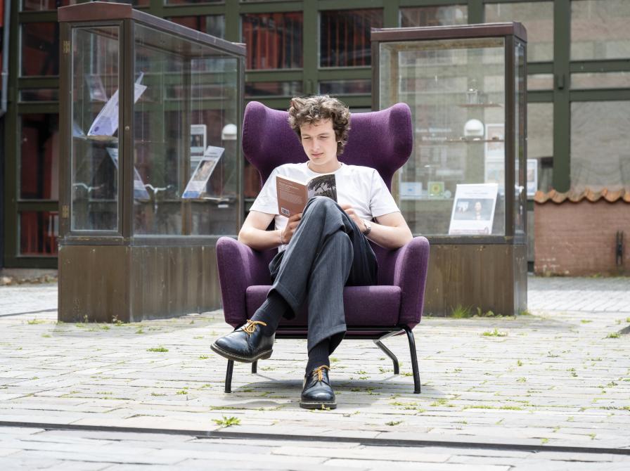 Gustav er en ung, sprudlende og lokal kulturentreprenør, der blandt meget andet er primusmotor på et ung-til-ung litteraturfællesskab på Sorø Bibliotek.